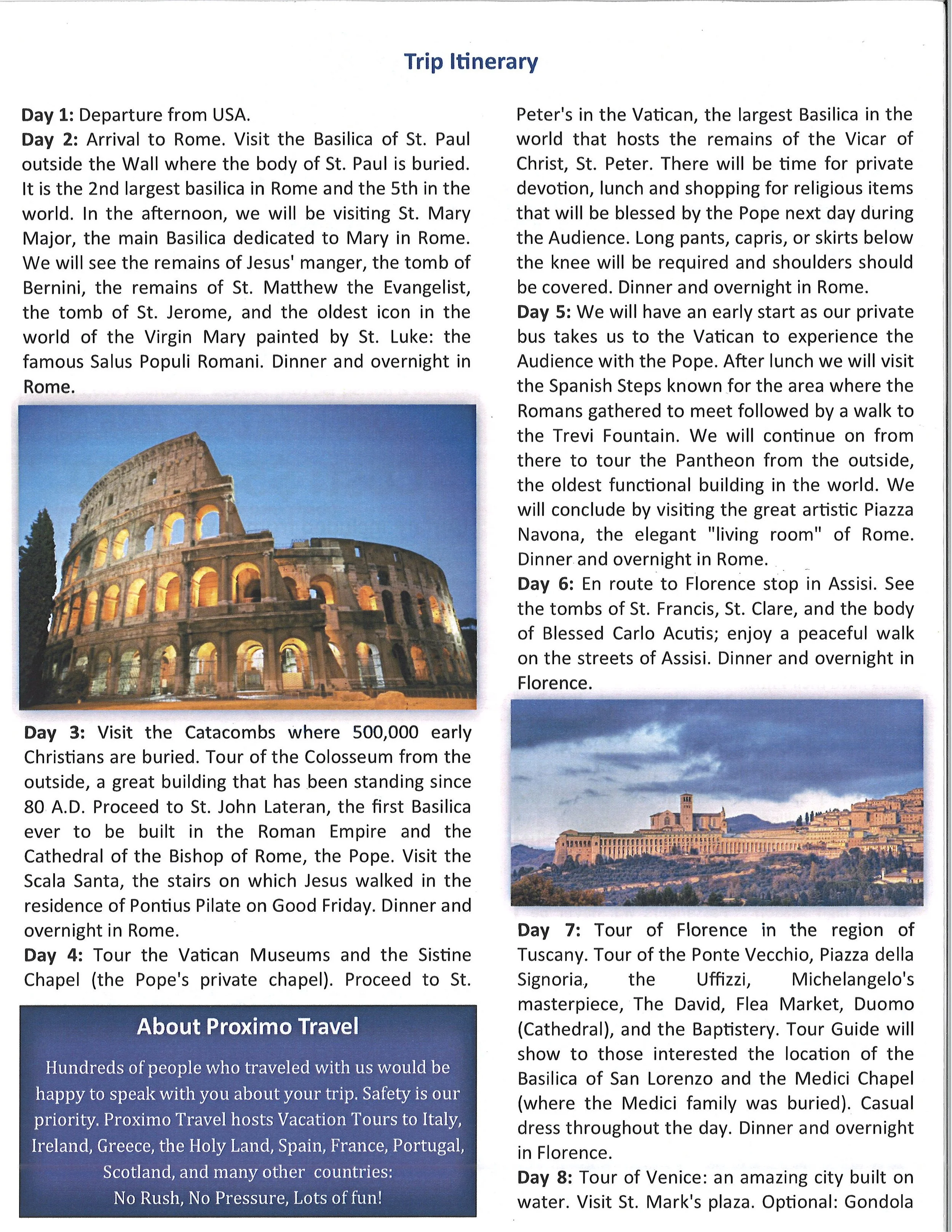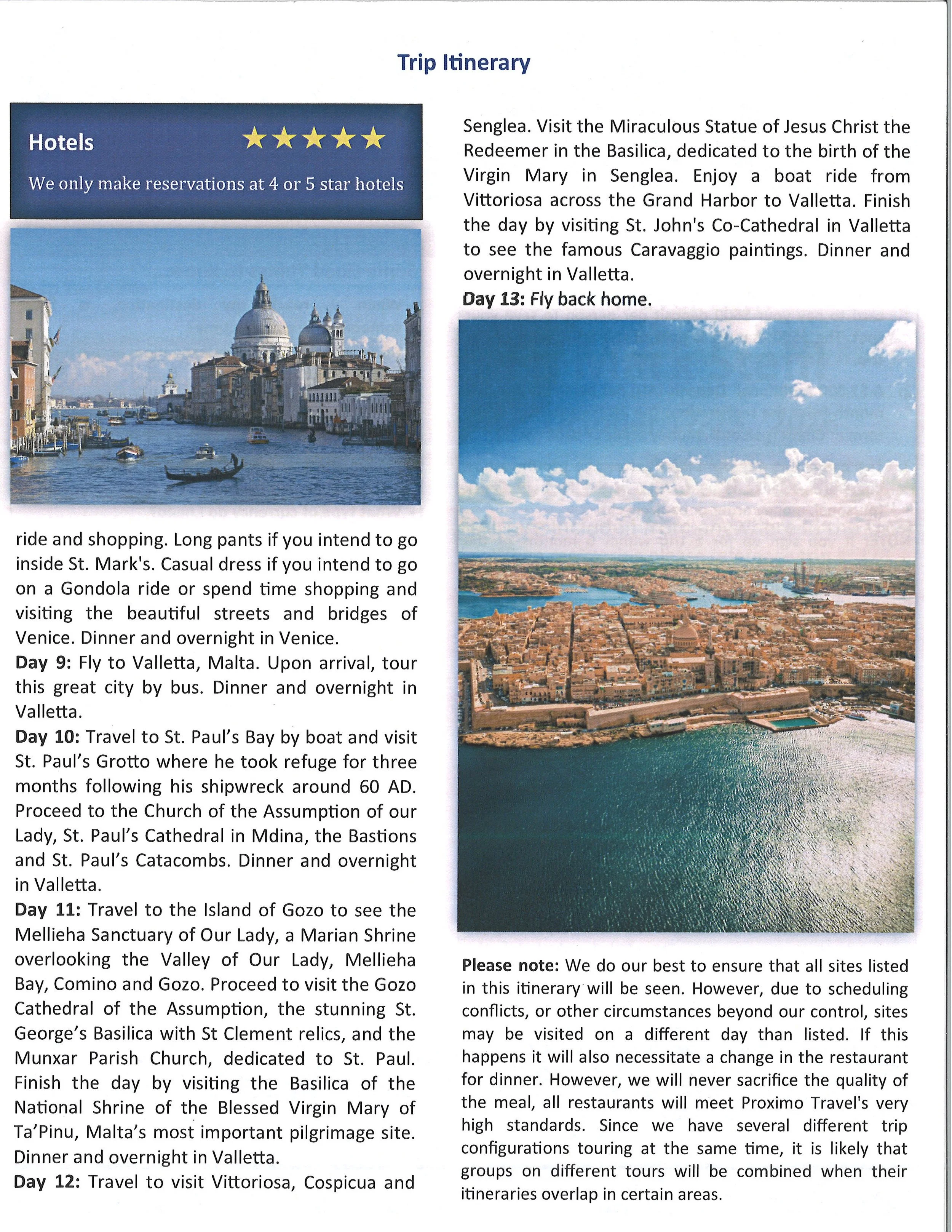 Travel to Italy & Malta with Fr. Mark Steffl Saturday, October 17, 2026 2:30 PM 14:30 Thursday, October 29, 2026 3:30 PM 15:30 Google Calendar ICS